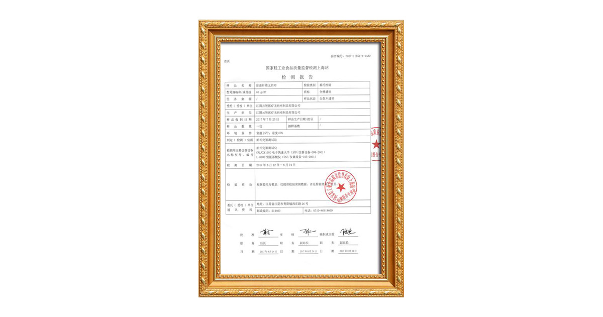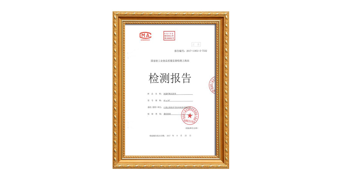 Inspection report on ice silkworm fiber non-woven fabric
